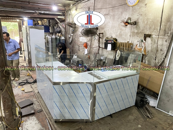 Tủ bếp khung inox chữ L được làm theo yêu cầu INOX TRUNG THÀNH