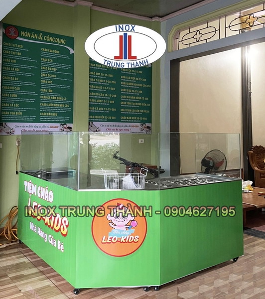 Tủ có nhiều khay giúp người dùng có thể bảo quản topping như thịt, cá, rau, củ các loại, một bên đặt bếp gas để nấu và giữ nóng cháo hay xào nấu các kiểu, buôn bán dễ dàng hơn.